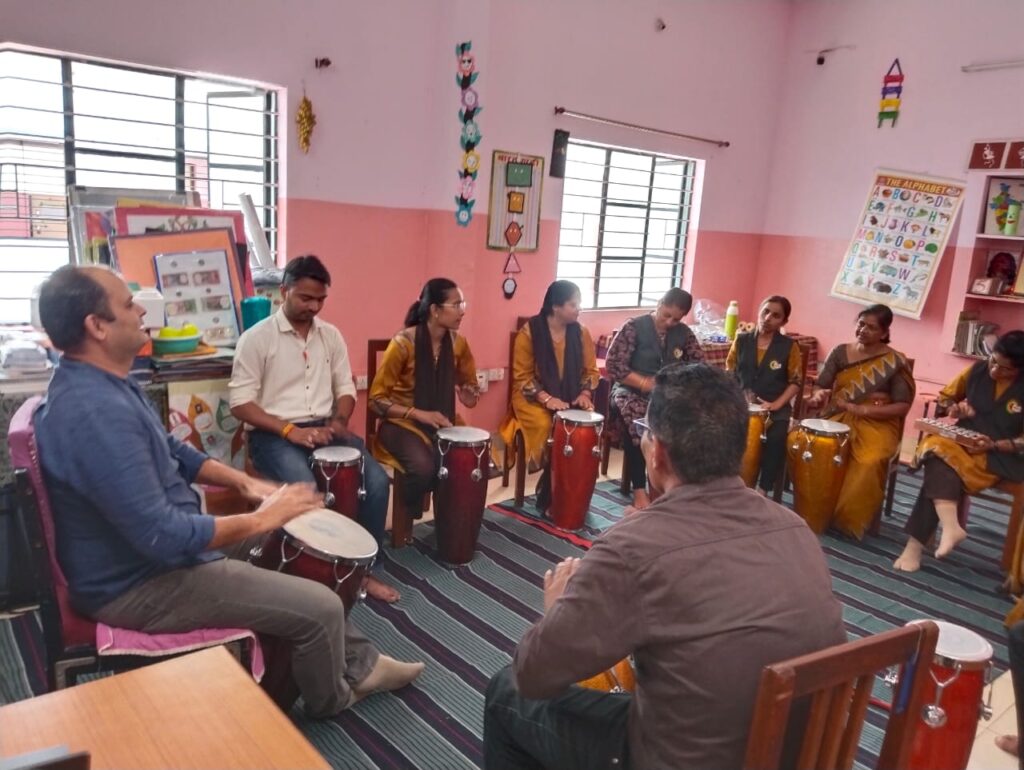 at Manovikas Special School in Ujjain May 2025 – From Awareness to Application: A Journey of Growth The Music Therapy Skills Sharing Program has evolved into a vibrant, collaborative learning space for special educators. With each workshop, teachers are not only learning new methods but also reflecting deeply on their own approaches to education and care. In the ongoing sessions, participants have begun applying: Educators are also learning to observe children more closely, adapt creatively, and let music lead the way in understanding each child’s emotional world. “We always believed in music’s power. But experiencing it work with our children has been a revelation. We feel more connected, more hopeful, more equipped.” — Participant Special Educator